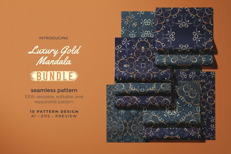 Introducing!, Luxury Gold Mandala - Seamless Pattern- Suitable for your design needs, All elements on this template are editable with adobe illustrator! Editable and Layered"
