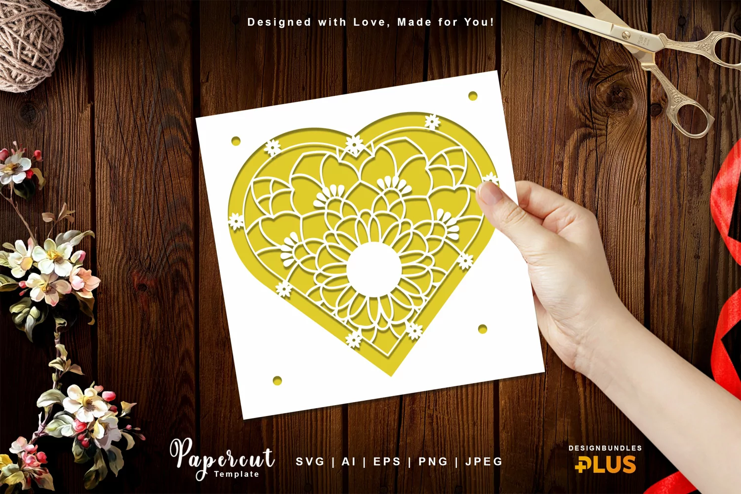 Mandala Love Shaped Card Cover Papercut Design
