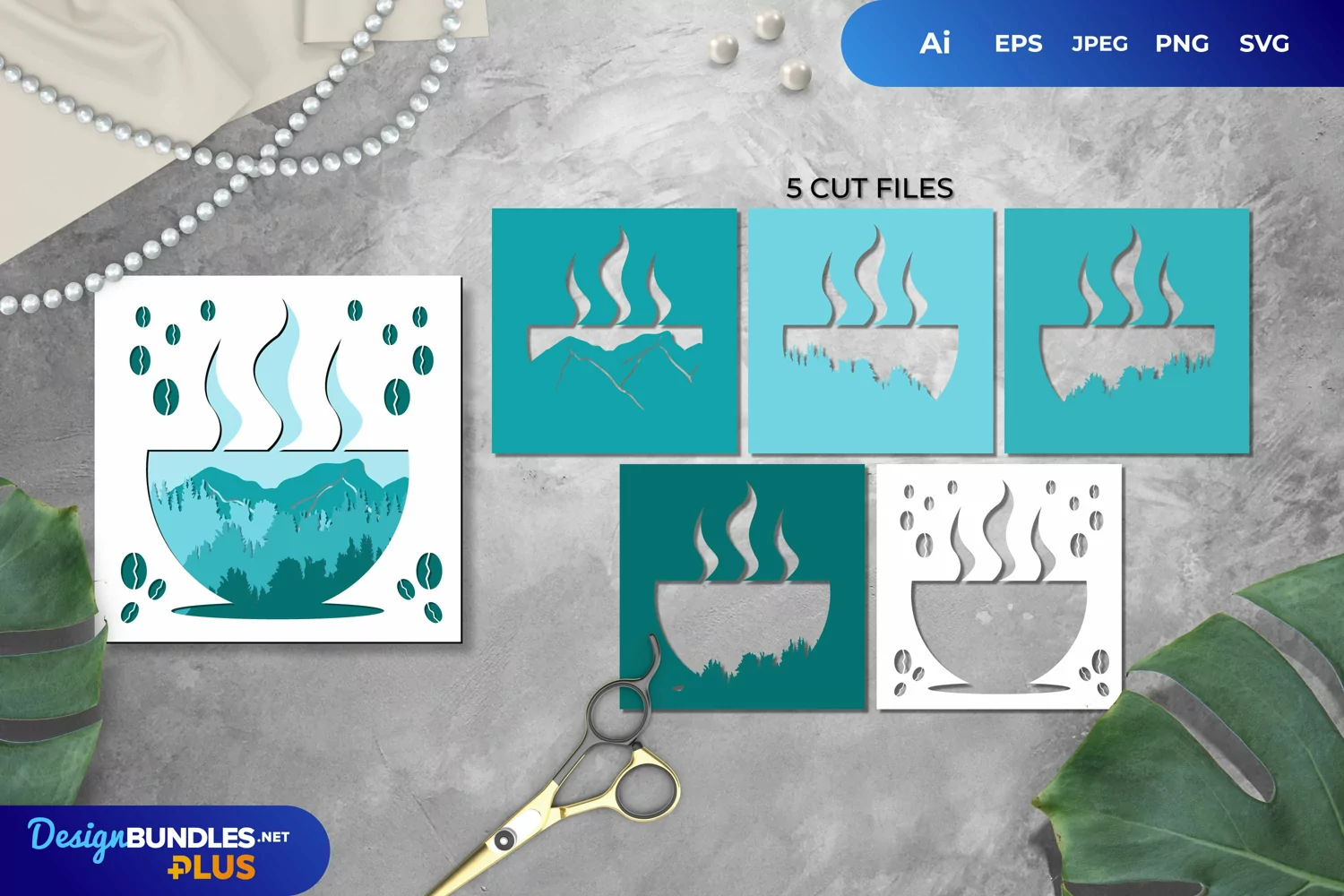3D Papercut Hot Coffee with Mountain View Layered Template