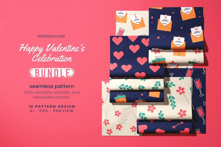 Introducing!, Happy Valentine's Celebration - Seamless Pattern- Suitable for your design needs, All elements on this template are editable with adobe illustrator! Editable and Layered"