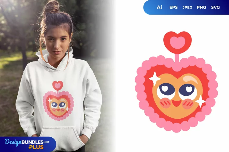 Looking for a cute and lovely illustration? Here we have a design of happy and excited heart character with a love antenna on its head. You can make it as heat transfer design on T-shirt, tote bag, mugs, pillows and others. It will make a great gift for a friend, your family, your parent and someone special, especially for Valentine's Day.
