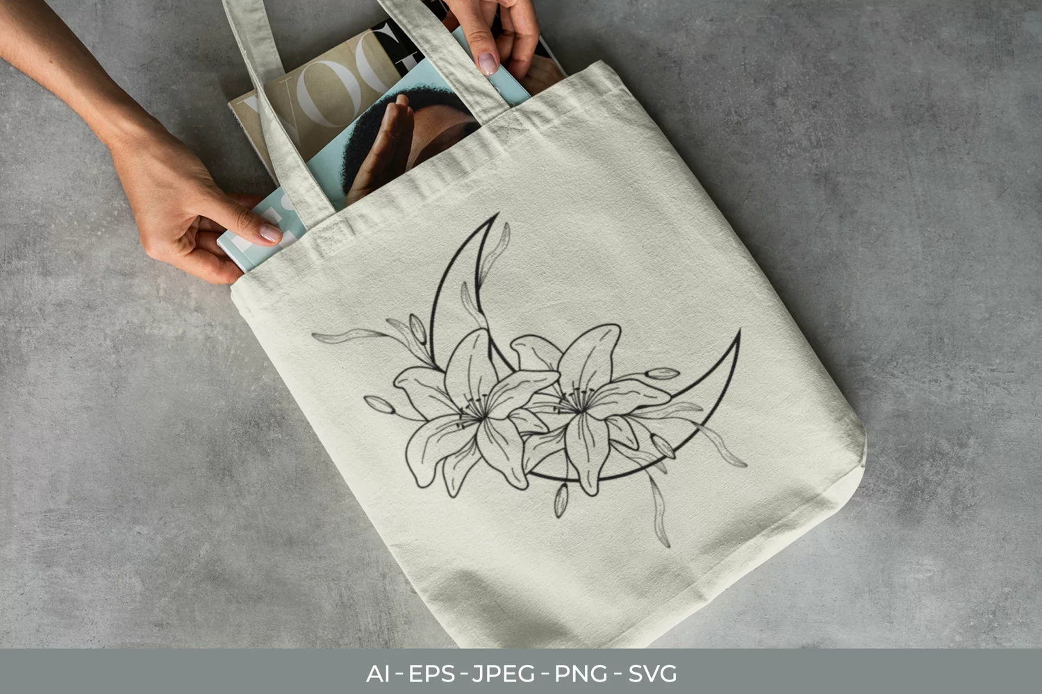 Lily Flowers on Crescent Moon SVG Design
