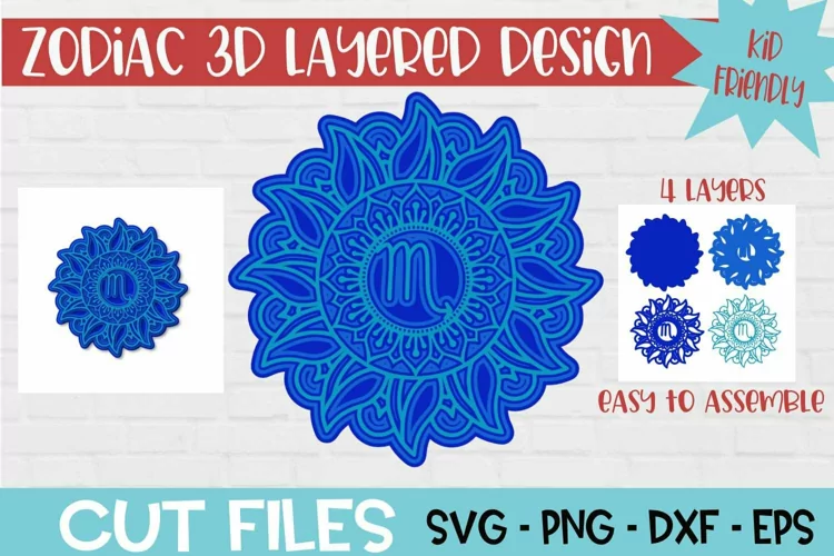 This 3d Layered Cancer Zodiac Mandala consists of 4 easy to cut and put together layers.