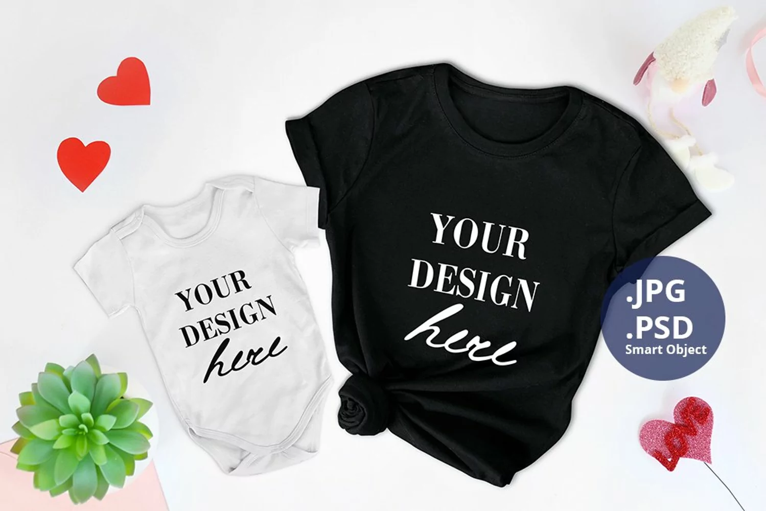 Are you in search of some awesome PSD mockups for your cool Valentine's day designs? Then this Black T-shirt and Baby Bodysuit St Valentine's day Mockup could be exactly what you're looking for!