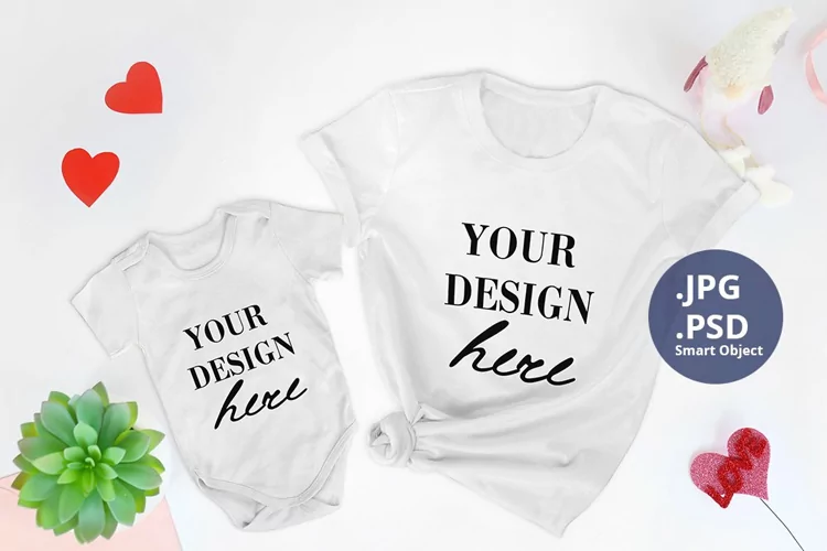 Are you in search of some awesome PSD mockups for your cool Valentine's day designs? Then this White T-shirt and Baby Bodysuit St Valentine's day Mockup could be exactly what you're looking for!