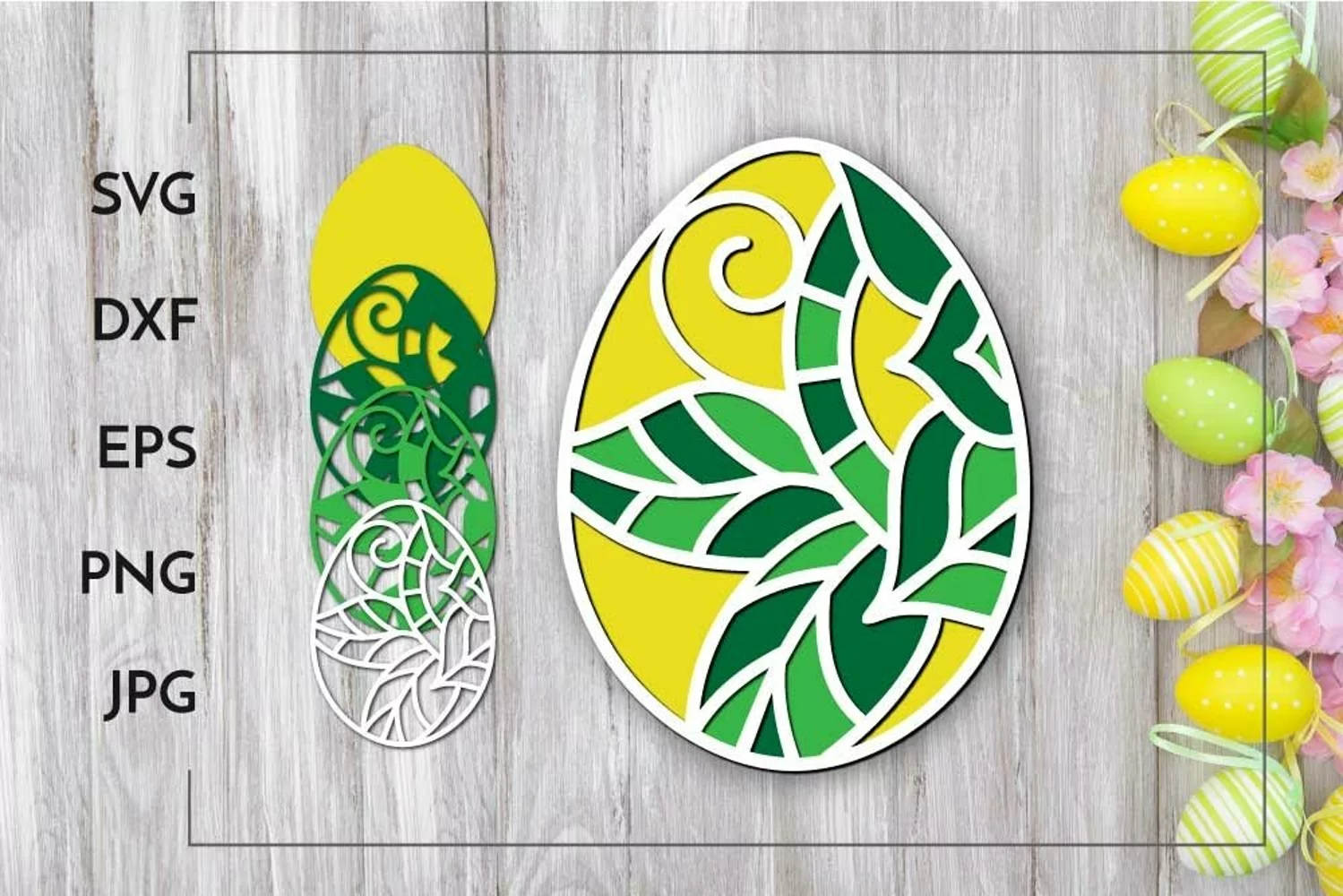 Layered Easter egg Spring leaves Laser cut