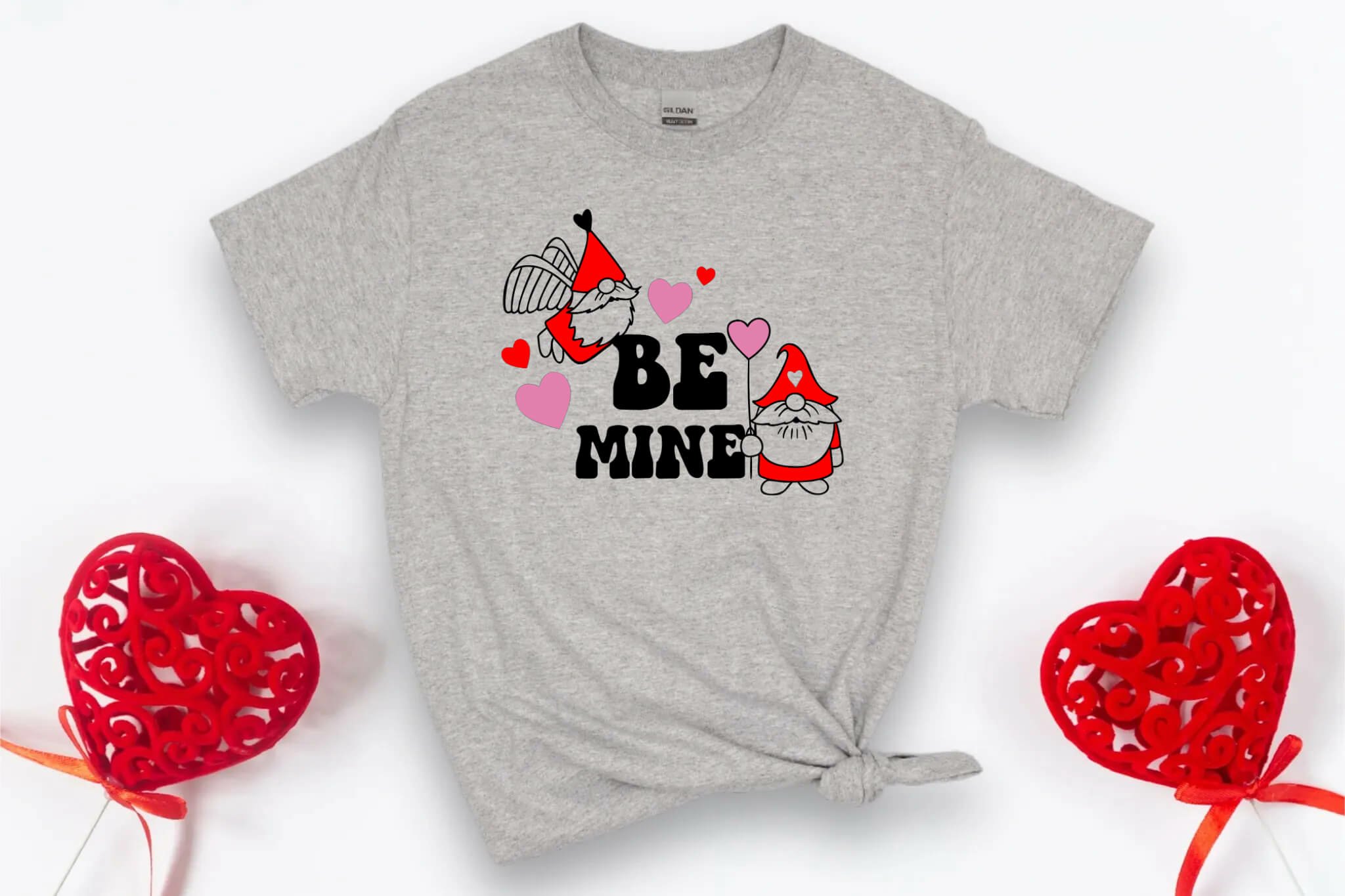 A cute Valentine or love gnome design. This gnomes cut file says, "Be Mine" and comes in color and black as well.