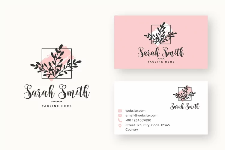 Minimalist feminine logo & business card templates including different file types.