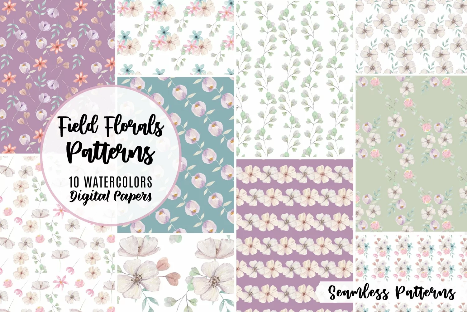Field Flowers Watercolor Patterns Seamless Leaves Florals example image 1