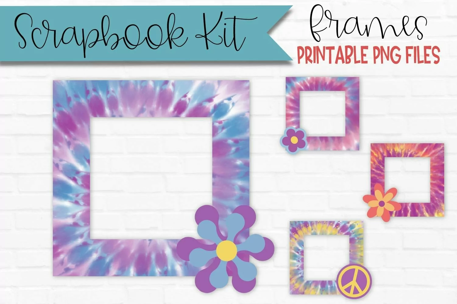 Tie Dye Scrapbook Frames Squares