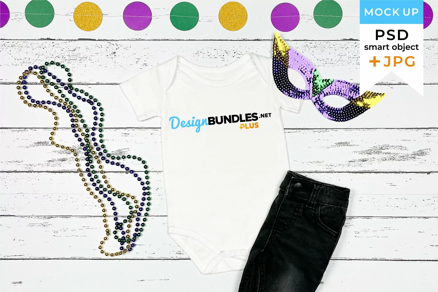 White Bodysuit Mockup Mardi Gras | Baby bodysuit mockup