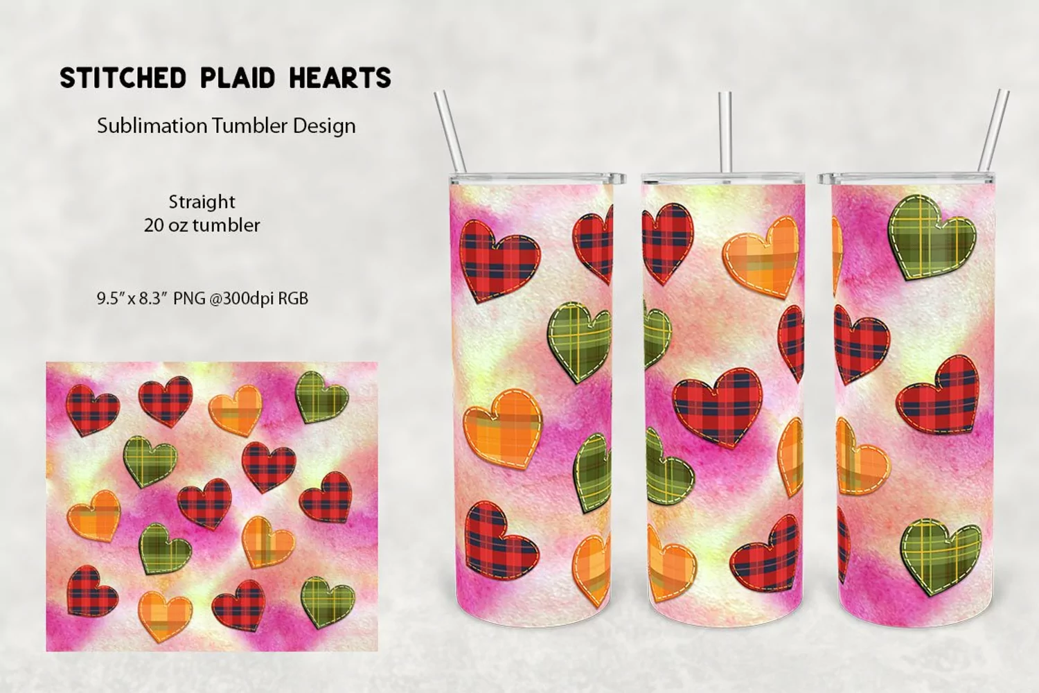 Plaid Stitched Hearts Tumbler Sublimation Wrap