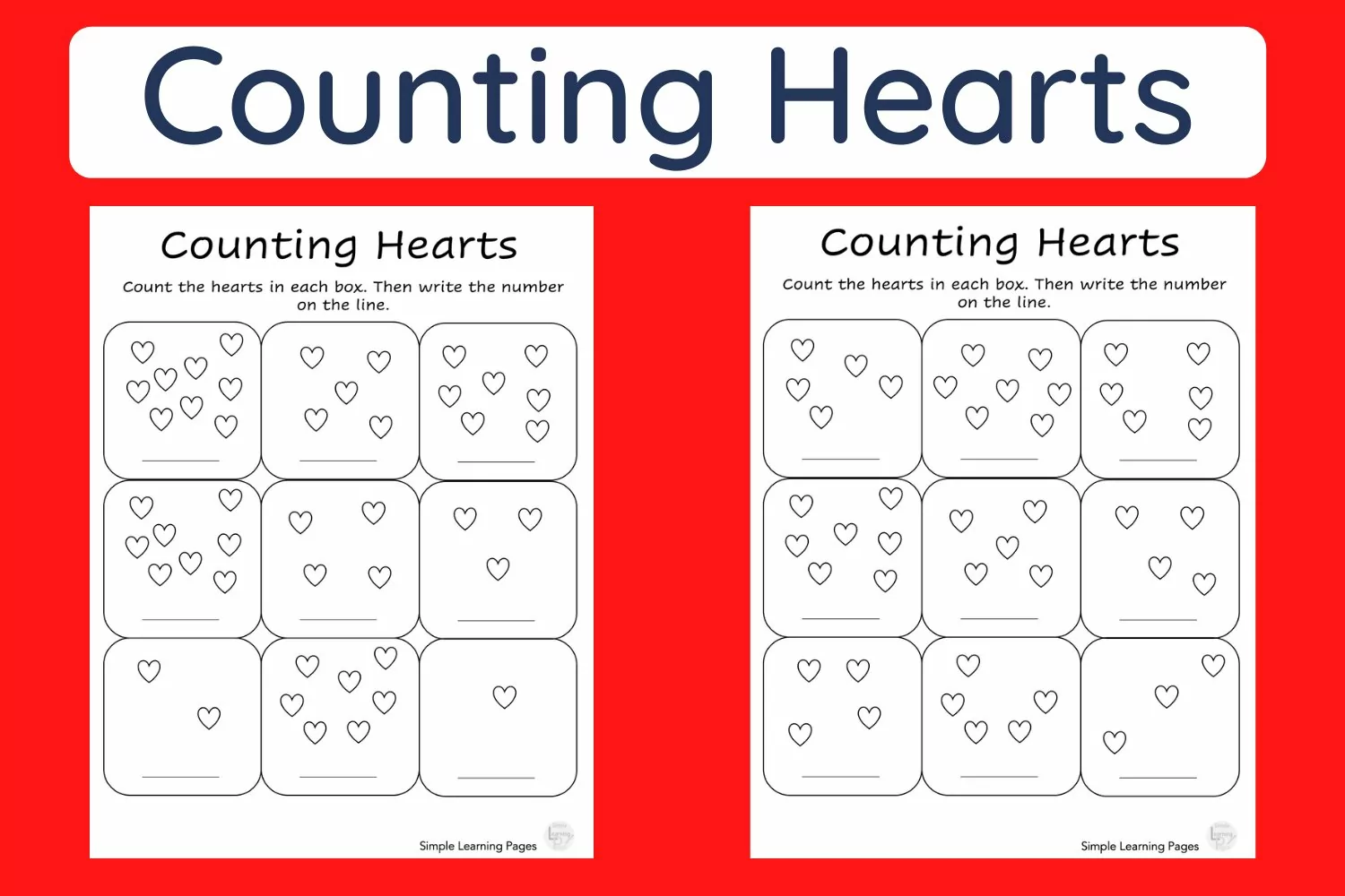 The children can count the hearts in each box and then write the numeral on the line. You can also extend the learning and have them write the number word instead of the numeral.