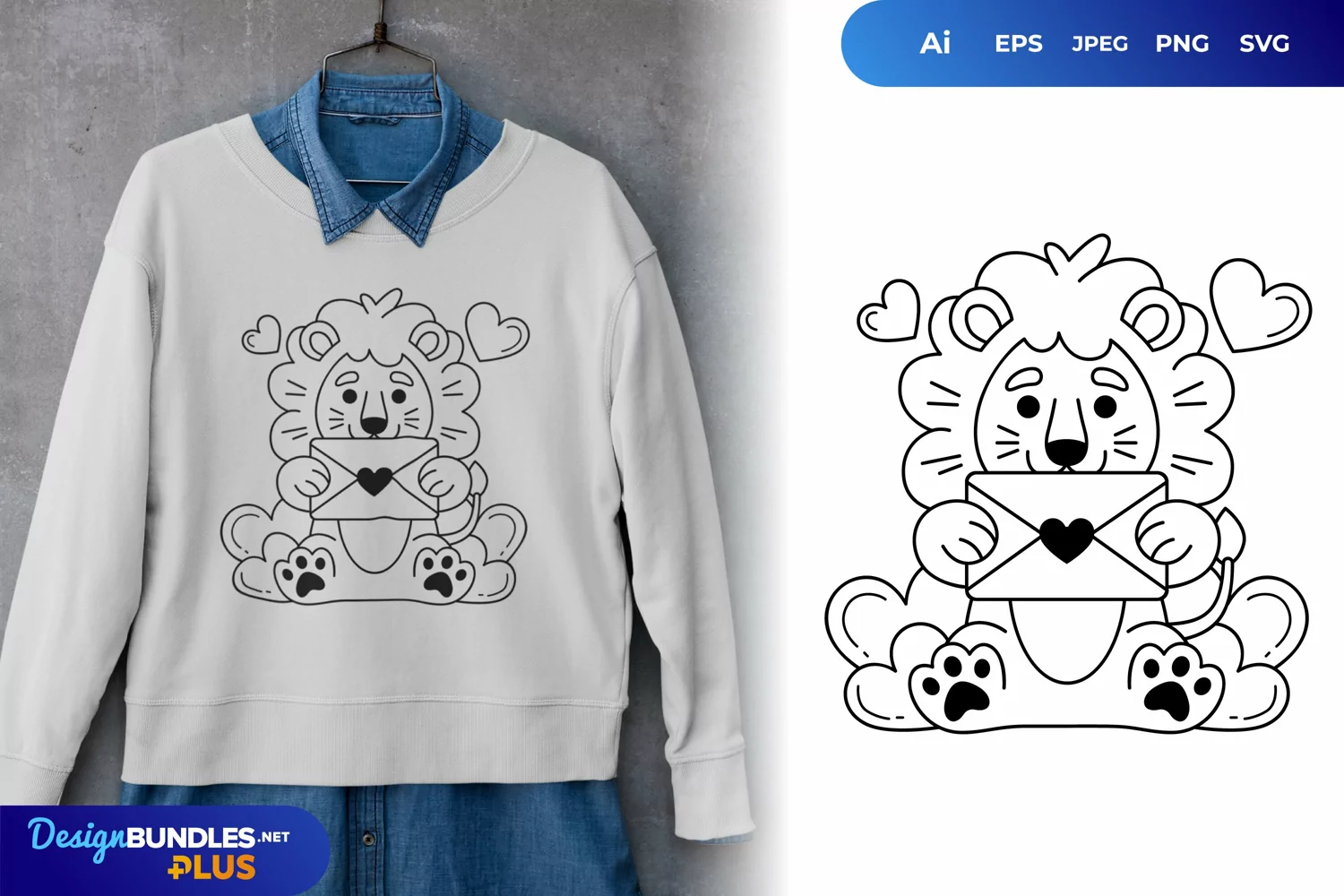 This is a template of cute lion holding a love letter. It is suitable for Valentine's Day, other special occasion, or daily use.