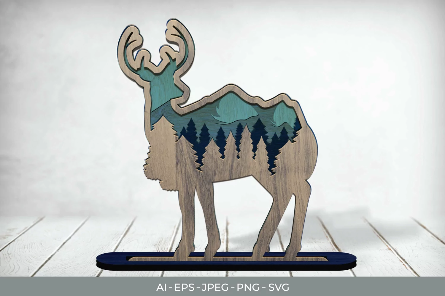 Do you love nature and animals? This is a layered laser cutting template with a stand base of a deer with pine forest and mountain scenery.