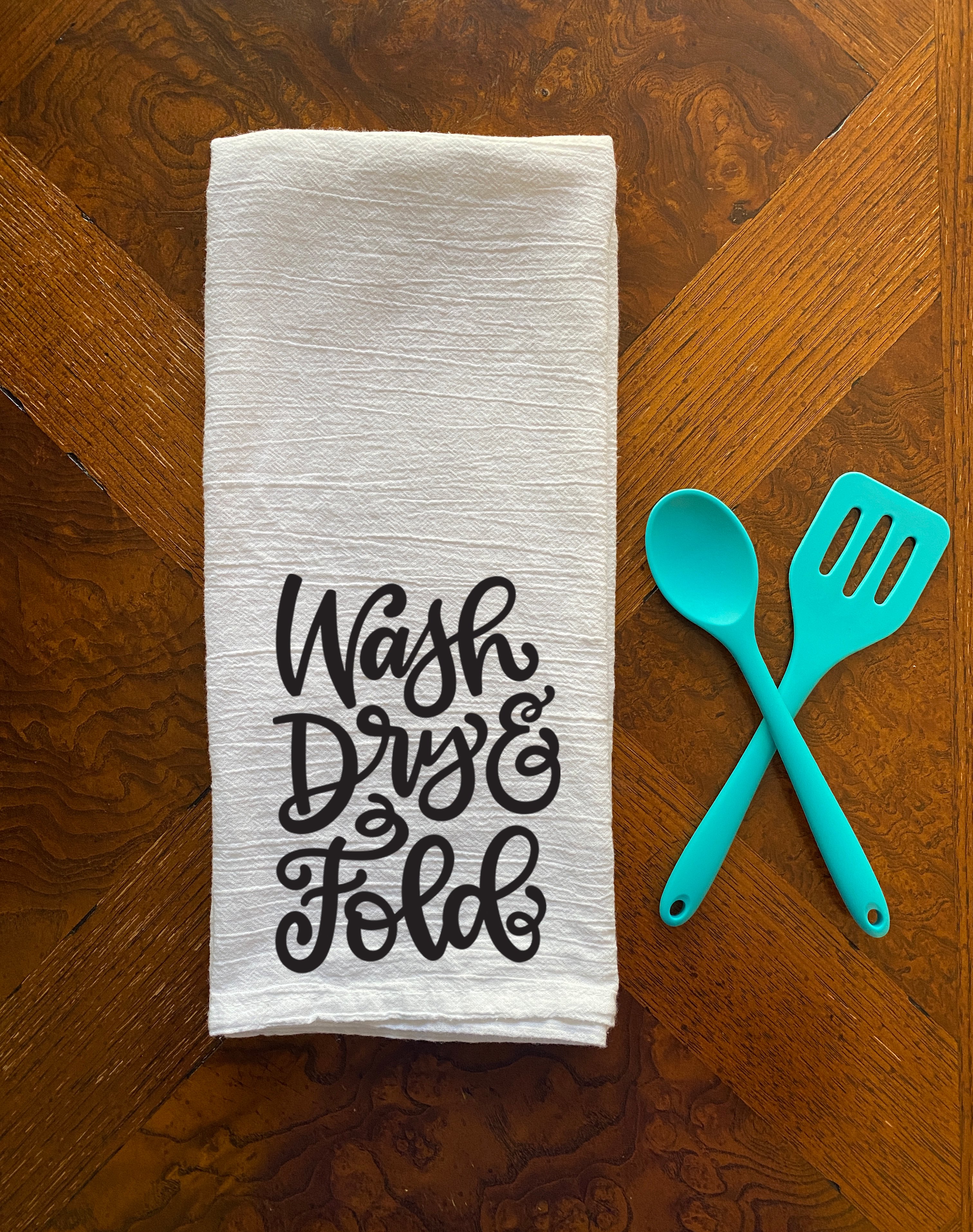 This is a hand lettered cut file. It reads, "Wash Dry and Fold."