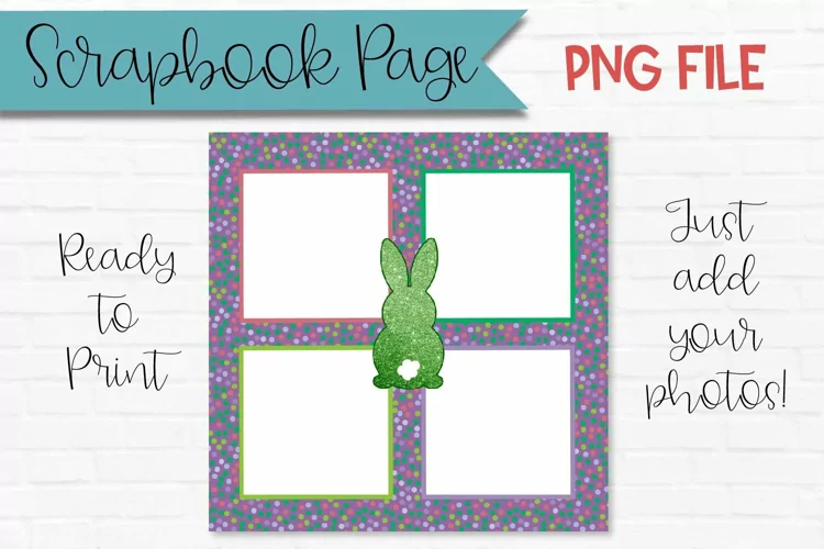 Easter Scrapbook Page With Bunny | 4 Frame Digital Scrapbook