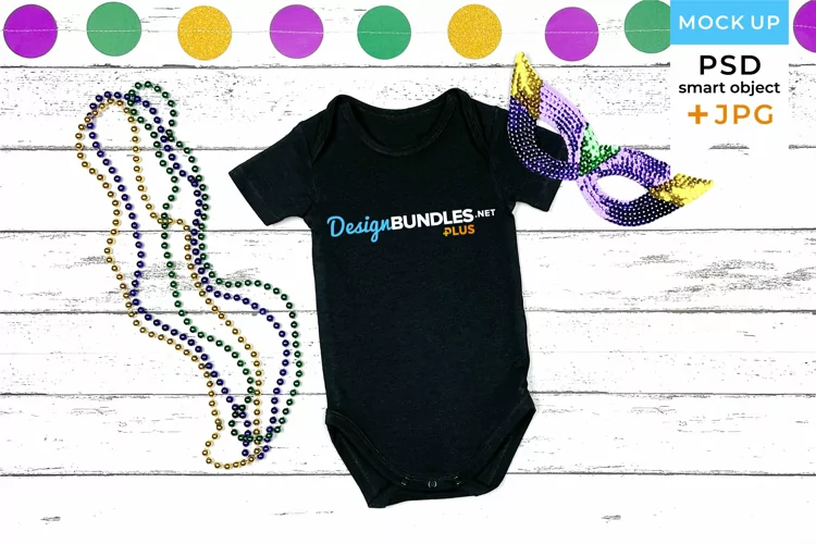 Baby Bodysuit Mockup Mardi Gras | Black bodysuit mockup