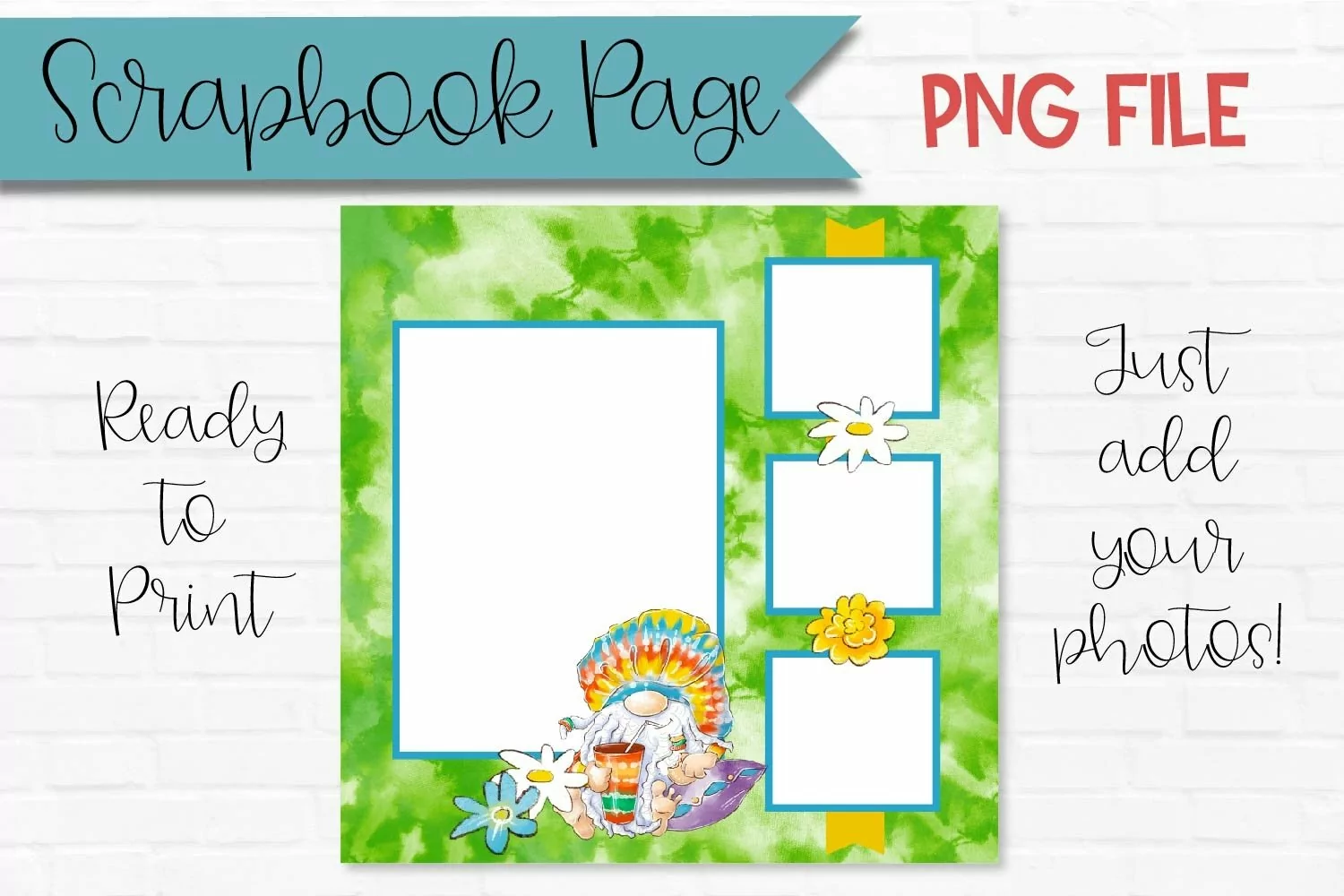 Tie Dye Gnome Scrapbook Page | Green Tie Dye Photo Frames