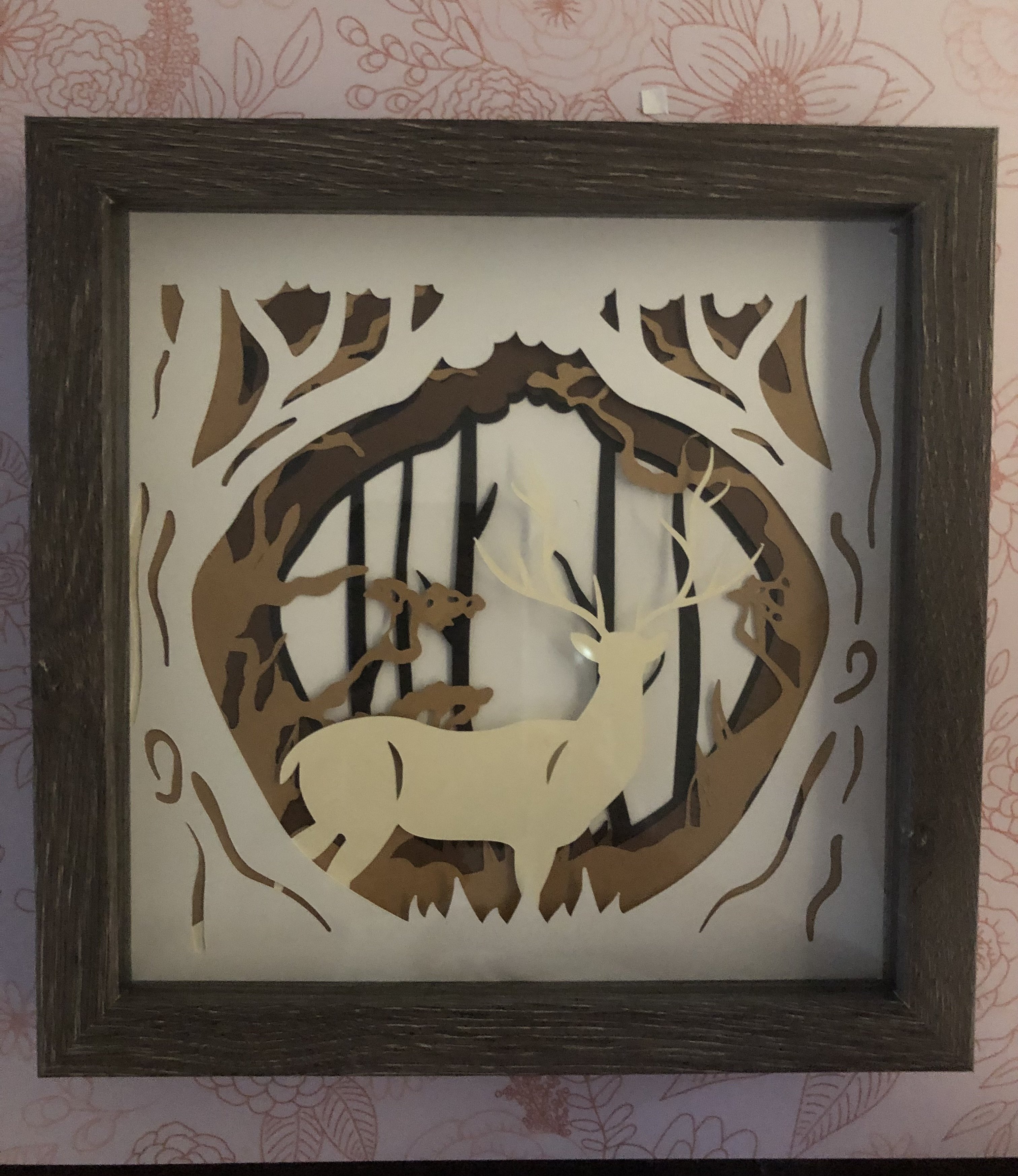Do you like animals? This is a 5-layer papercut design of a buck in the woods. This is suitable for children's bedroom, club room, play room, living room decoration, and others.