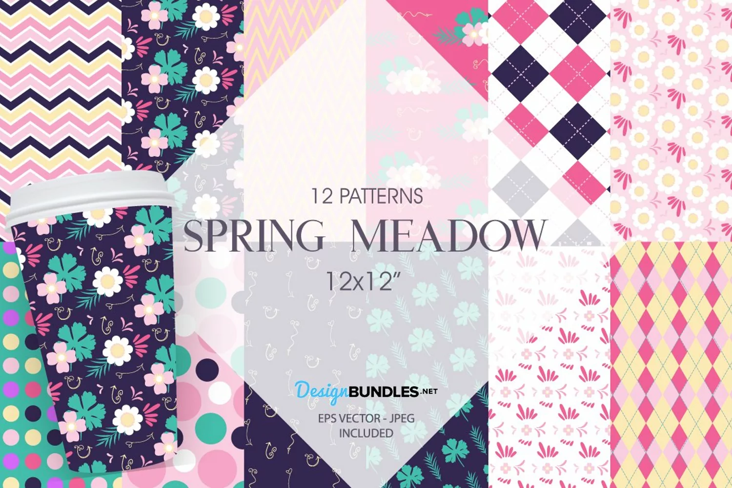 12 Spring Meadow Digital Papers Bundle. Spring Meadow Patterns Collection. COLOR AND