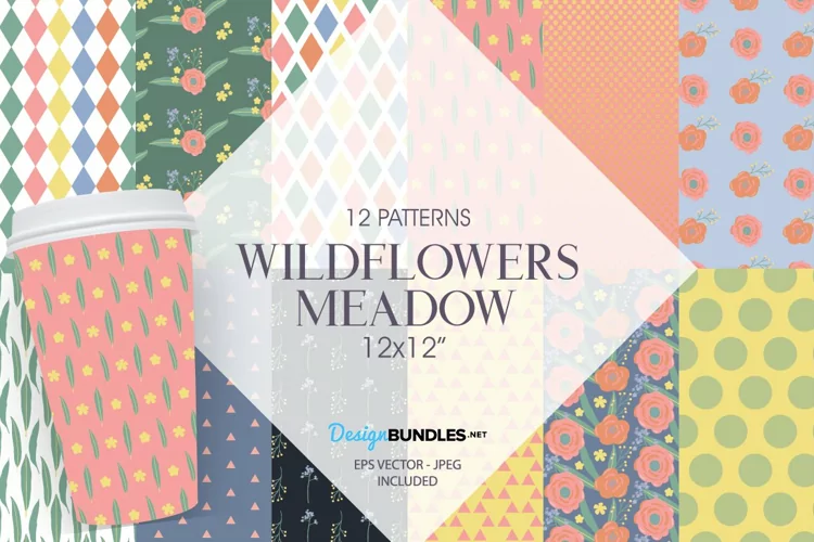 12 Wildflowers Meadow Digital Papers Bundle. Wildflowers Meadow Patterns Collection. COLOR AND