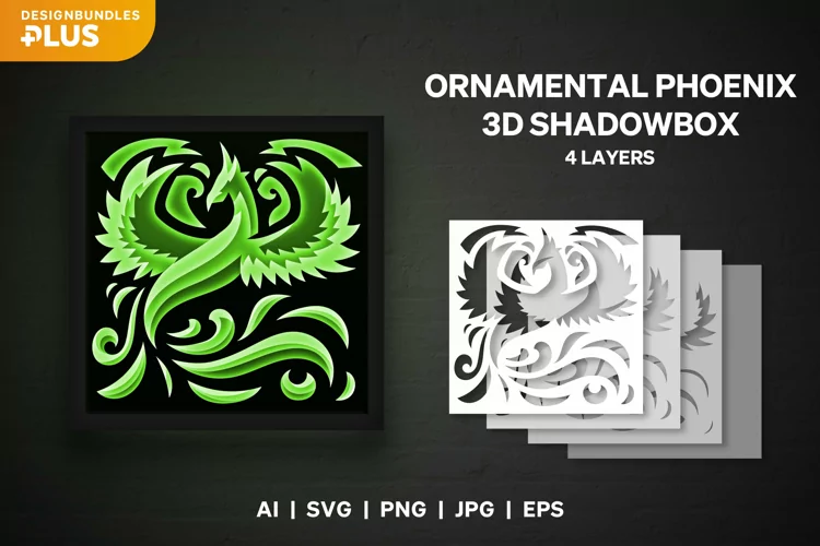 This is a 4-layer papercut design of valiant phoenix that decorated with beautiful swirls. This is suitable for bedroom, club room, play room, dining room, study room, living room, coffee shop, restaurant, library decoration, and others.