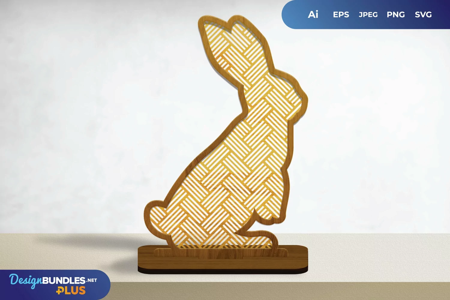 This is a layered laser cut template of a cute rabbit standing on its hind legs with decorative rattan layer.
