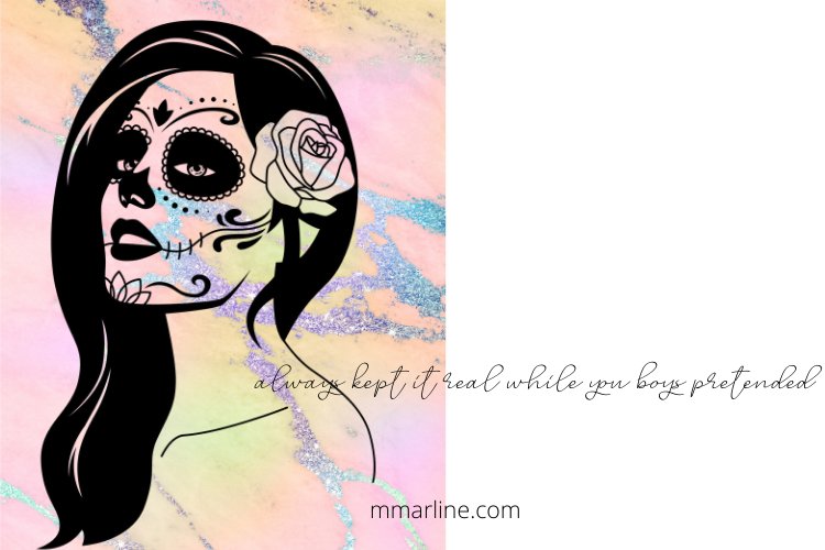 This is a template of beautiful woman with a rose in her hair and sugar skull make-up for Day of The Dead celebration.