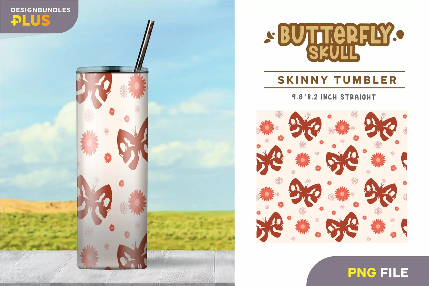 This is a seamless template of butterfly skull with smaller flowers on peach background. It is intended for 20 oz. tumbler. Not all tumblers are the same size, so be sure to check the dimensions.