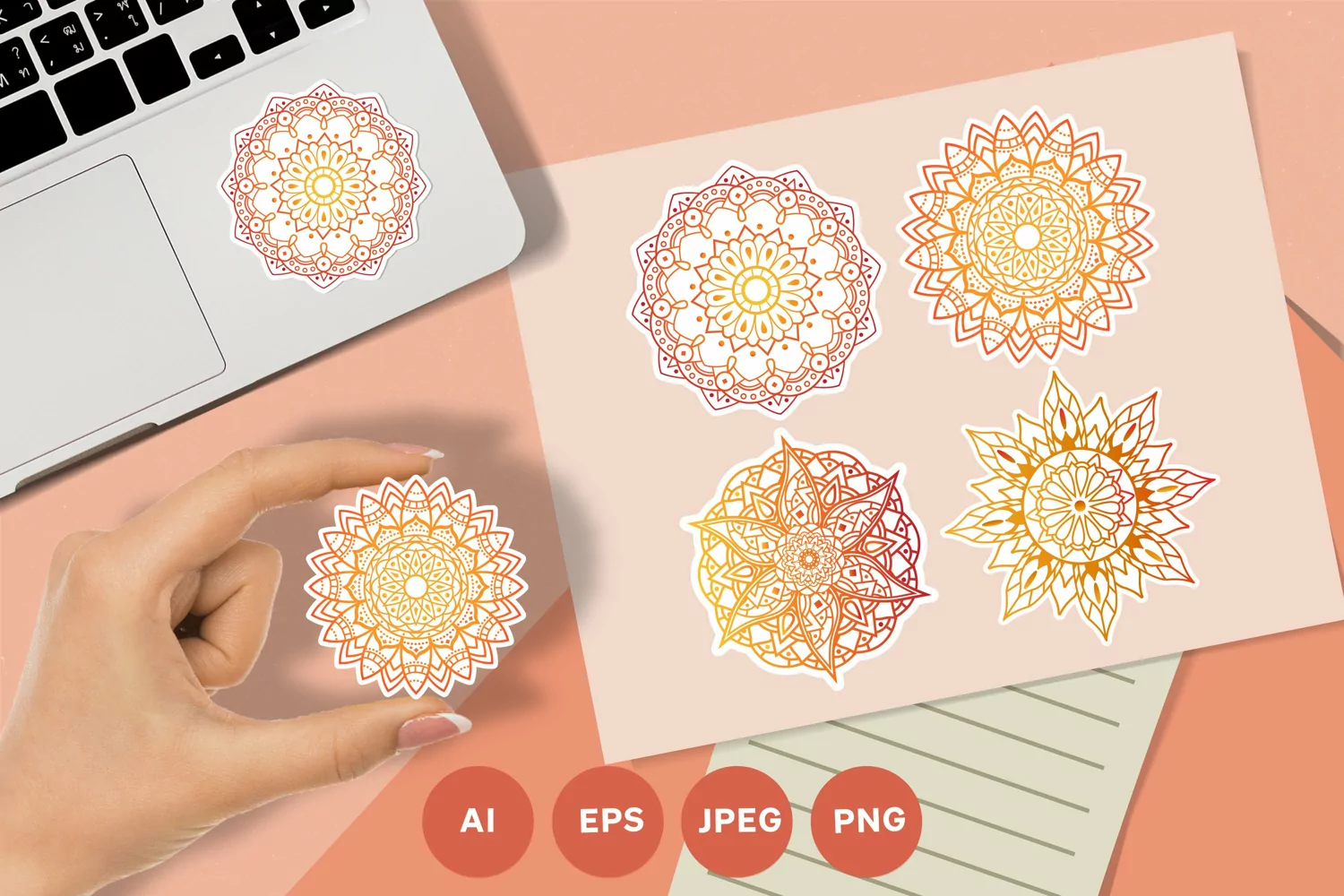 Here we have a template set of intricate mandala flowers in gradient color. You can print it as sticker pack. It will make a great gift for a friend, your family, your parent and someone special.