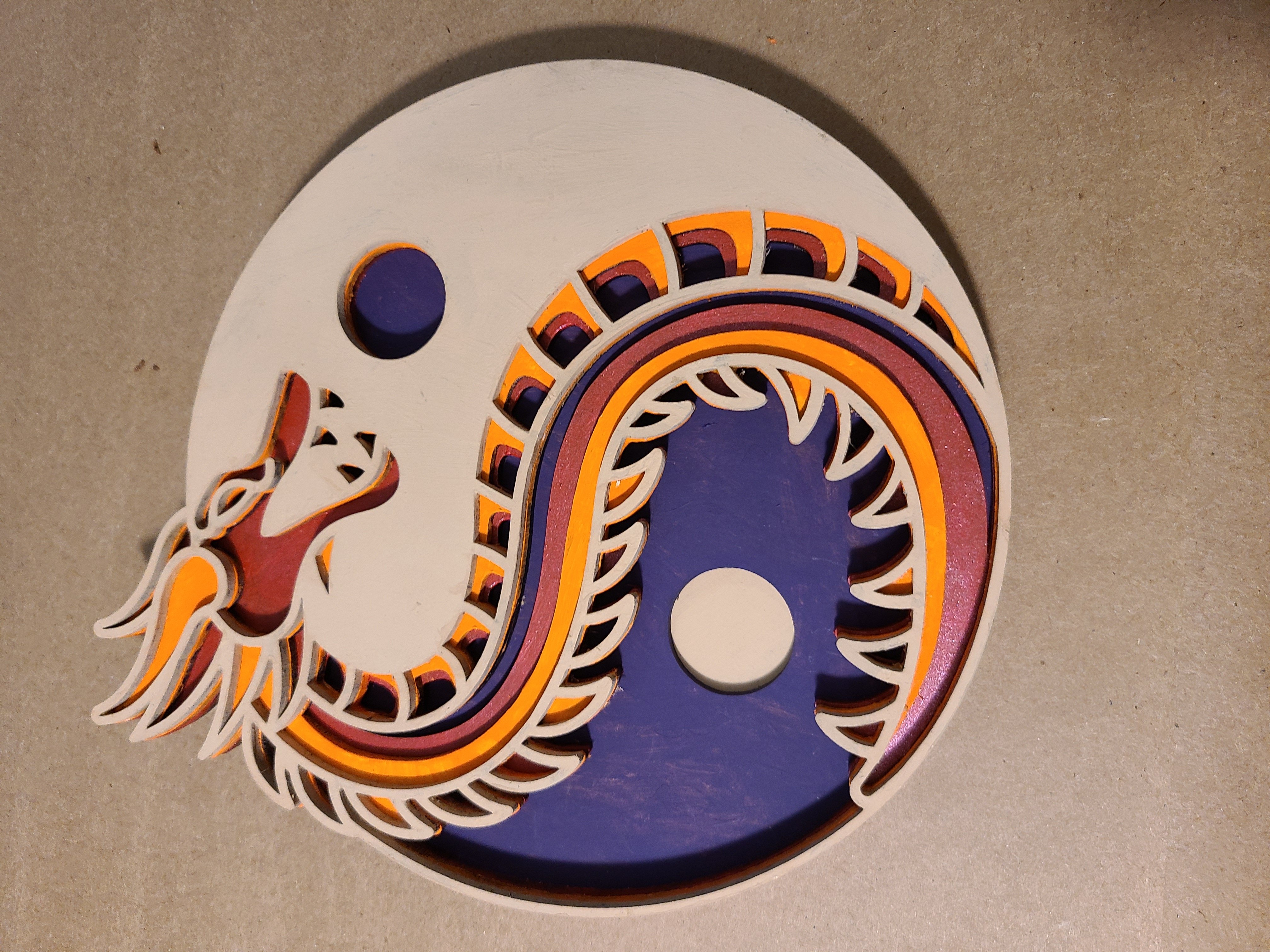Are you a fan of dragons? This is a 5-layer laser cutting template of circular Yin and Yang with dragon as divider of the two elements.