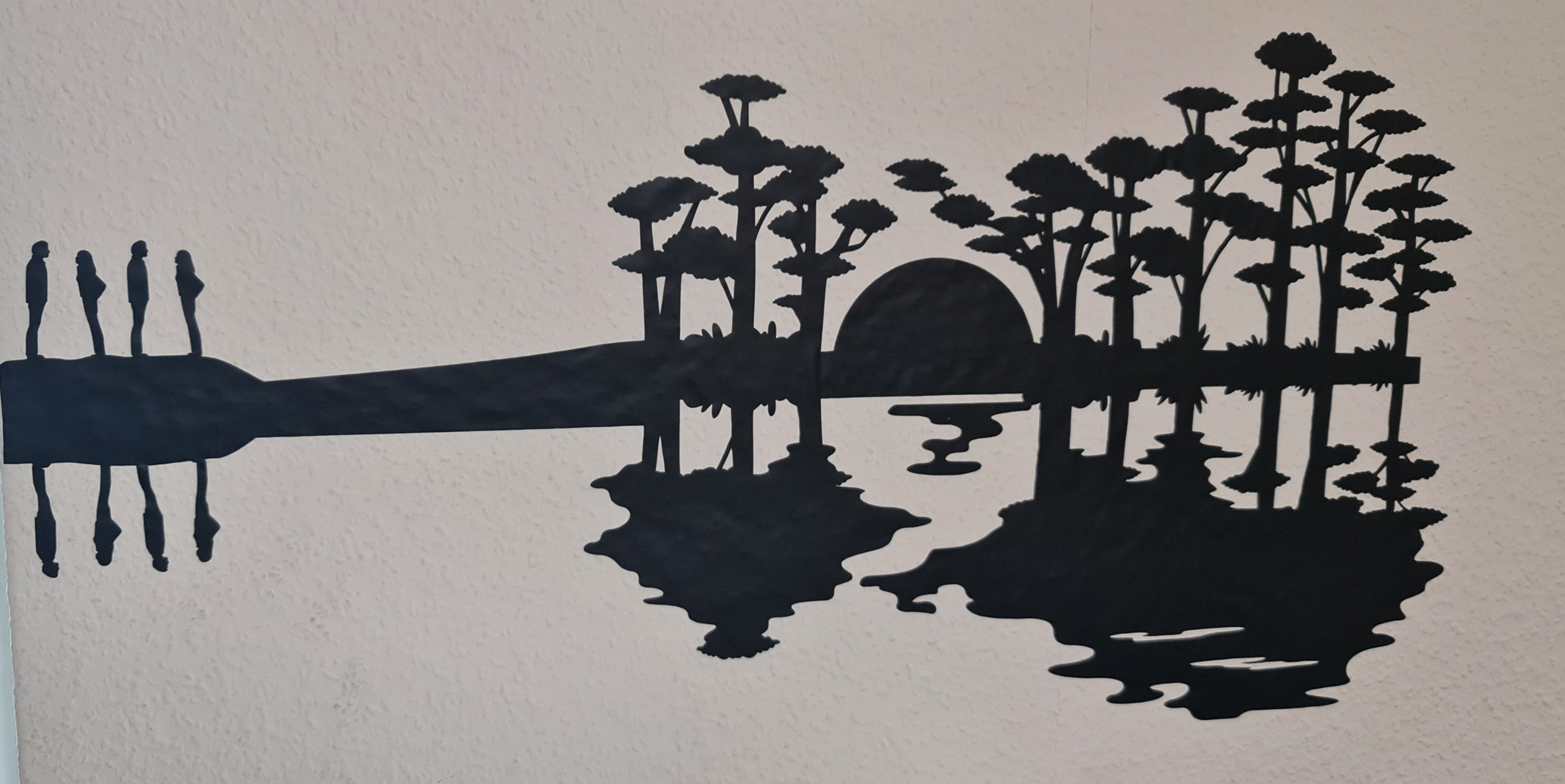 Do you love music? This is a template a guitar made of scenery of wet woodland during sunset and its reflection on the water surface.