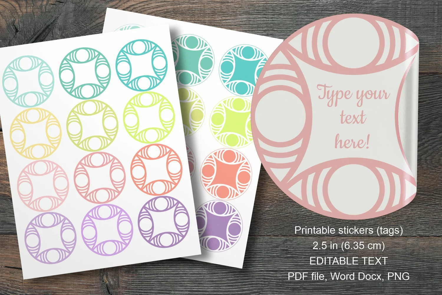 Printable Geometric Frame Round Labels - Customizable Text Templates.