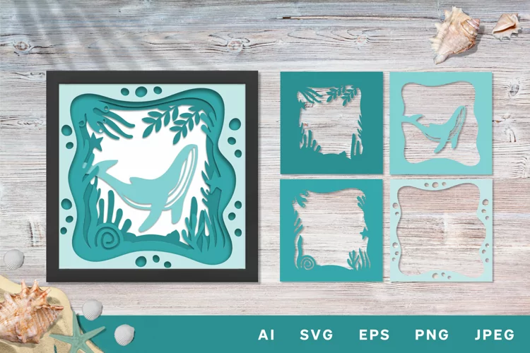 This is a 4-layer papercut design of humpback whale in the ocean. This is suitable for bedroom, club room, playroom, dining room, study room, living room, coffee shop, restaurant, library decoration, and others.