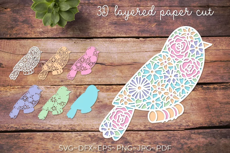 3d floral bird excellent for Spring paper cutting, layered vinyl for clothing, layered wood for home decor, etc.