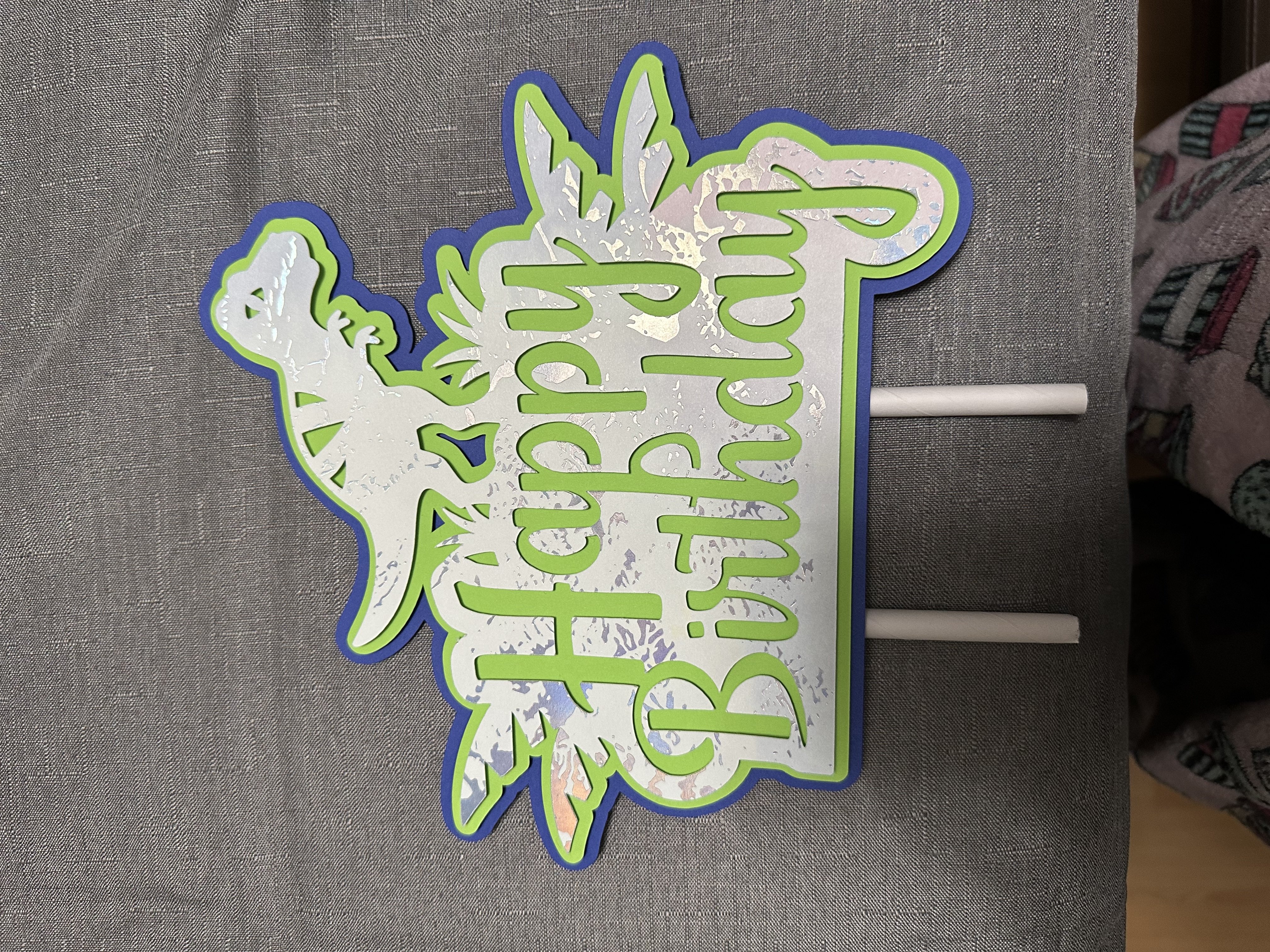 Celebrating a birthday? Here we have a set template of cake topper of "Happy Birthday" text with various dinosaurs. They are pterodactyl, stegosaurus, ankylosaurus, brontosaurus, triceratops, and T-rex.