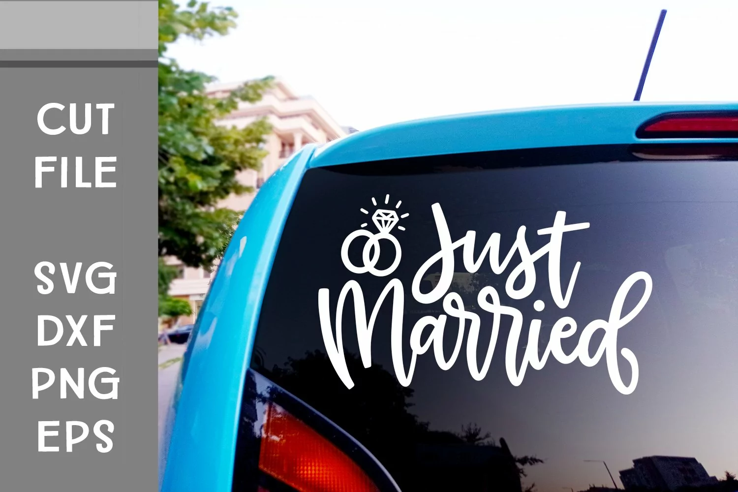 This is a hand lettered cut file. It reads, "Just Married."