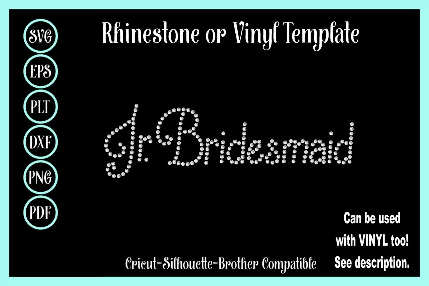Rhinestone digital downloads are the perfect way to grow your design base and offer your clients on trend, as well as beautiful and classic designs. This rhinestone instant download template includes the following formats: SVG, EPS, DXF, PLT, and PNG, ensuring it is compatible with a wide variety of cutting software and machines, including the Silhouette, Cricut, and Brother software.