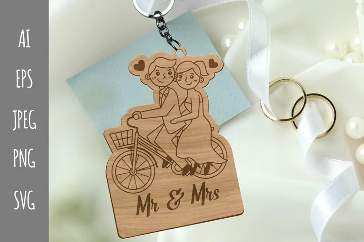 Here we have a lasercut template of cute wedding couple doodle with "Mr & Mrs" text. You can use it as keychain, hanging decoration, wedding souvenir, and many more. It will make a great gift for a friend, your family, your parent and someone special.