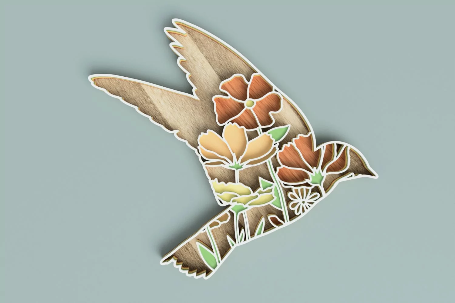 Digital multilayer file ( 6 layers), Bird silhouette decor, specially prepared for laser cutting, paper cutting, cricut, CNC router, as well as other cutting machines.