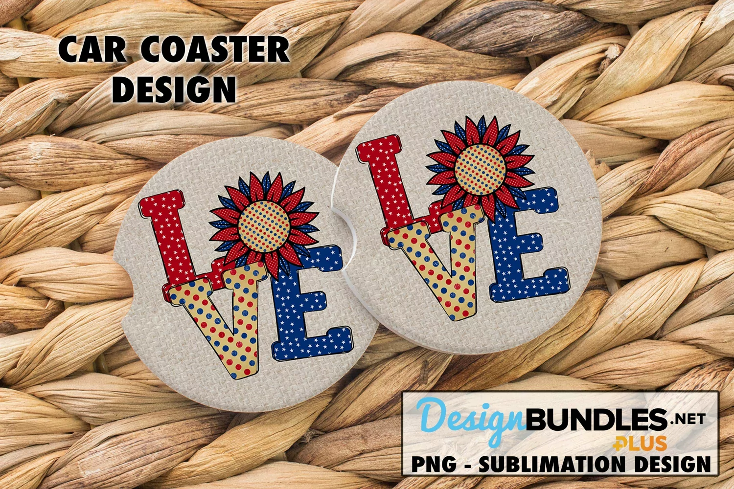 Patriotic LOVE Sunflower Car Coaster or Keychain Sublimation example image 1