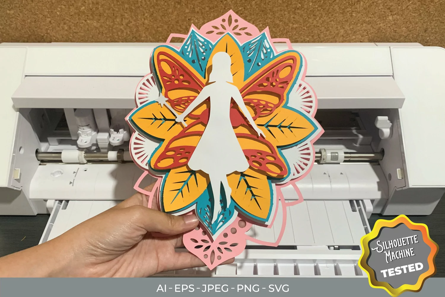 Here we have a 6-layer papercut design of wood fairy with beautiful leaf and intricate mandala pattern. This is suitable for bedroom, club room, playroom, dining room, study room, living room, coffee shop, restaurant, library decoration, and others. It will make a great gift for a friend, your family, your parent and someone special.