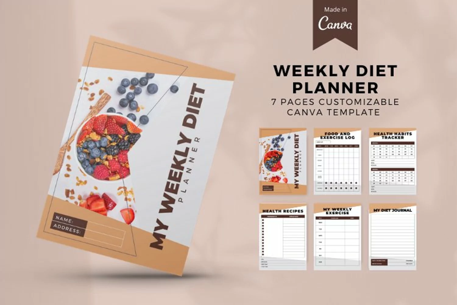 Feeling frustrated with your diet? Wish you weren't spending so much time on tracking? Weekly Diet Planner Canva Template is an easy and hassle free way to make dieting a breeze. This template will help you stay on track and help you reach your goals.