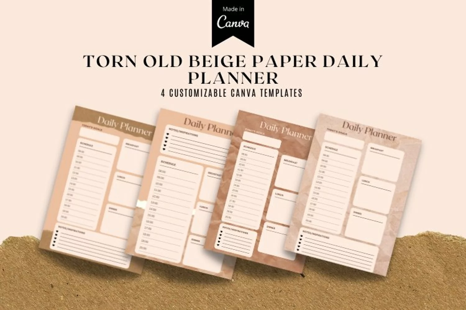 Boost your productivity with the Torn Old Beige Paper Daily Planner Canva Template. This simple, yet elegant template will help you feel more in control of your own life. Whether you need to plan out your days, keep track of your appointments, or manage your business's schedule, this template is for you!