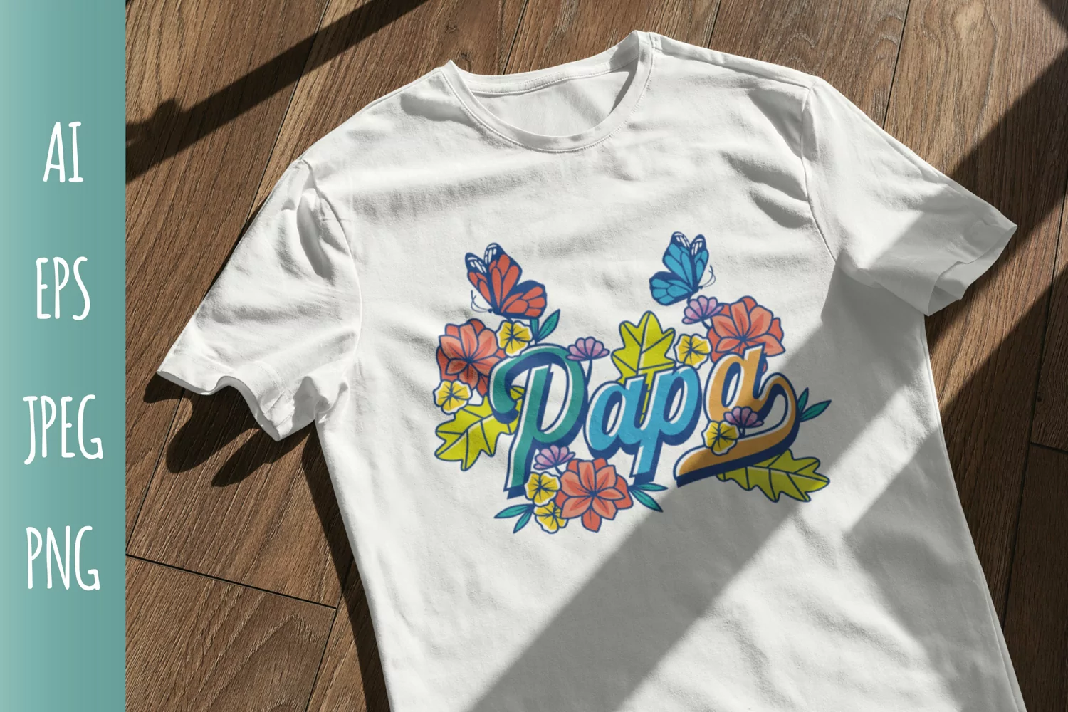 This is a template of colorful "Papa" lettering with flowers and butterflies.