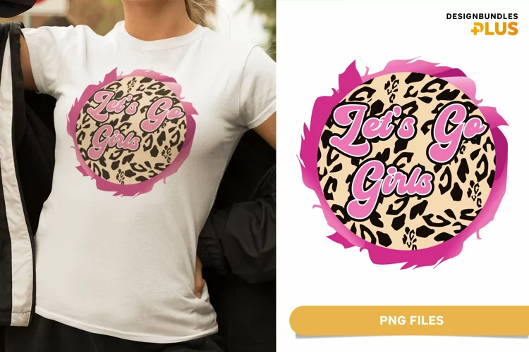 This is a template of "Let's Go Girls" text on a circular leopard print with fiery pink edge.