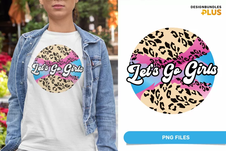 This is a template of "Let's Go Girls" text on a circular leopard print with a band of blue-pink colors.