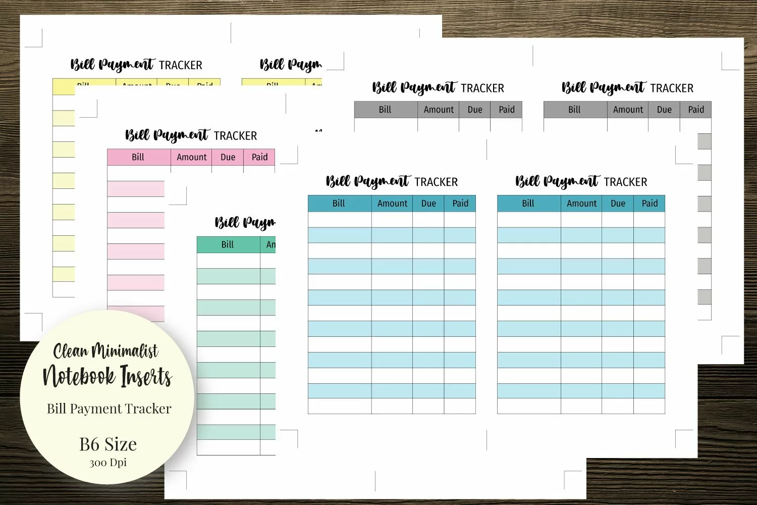 Clean Minimalist Bill Payment B6 Size Notebook Inserts