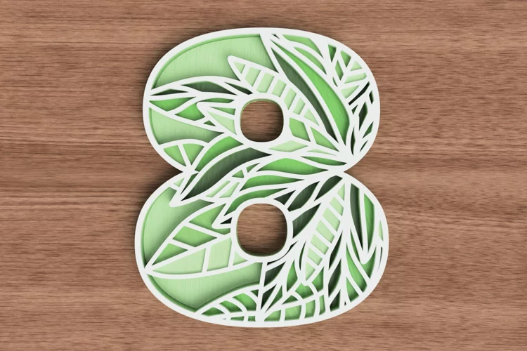 Digital multilayer file ( 6 layers), Botanical number decor, specially prepared for laser cutting, paper cutting, cricut, CNC router, as well as other cutting machines.